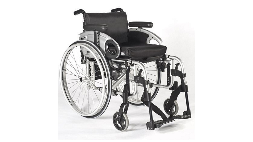 Dieser Rollstuhl ist auch als Trippelrollstuhl-Modell erhältlich.